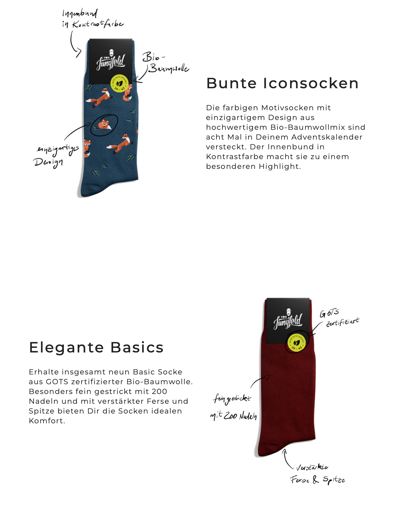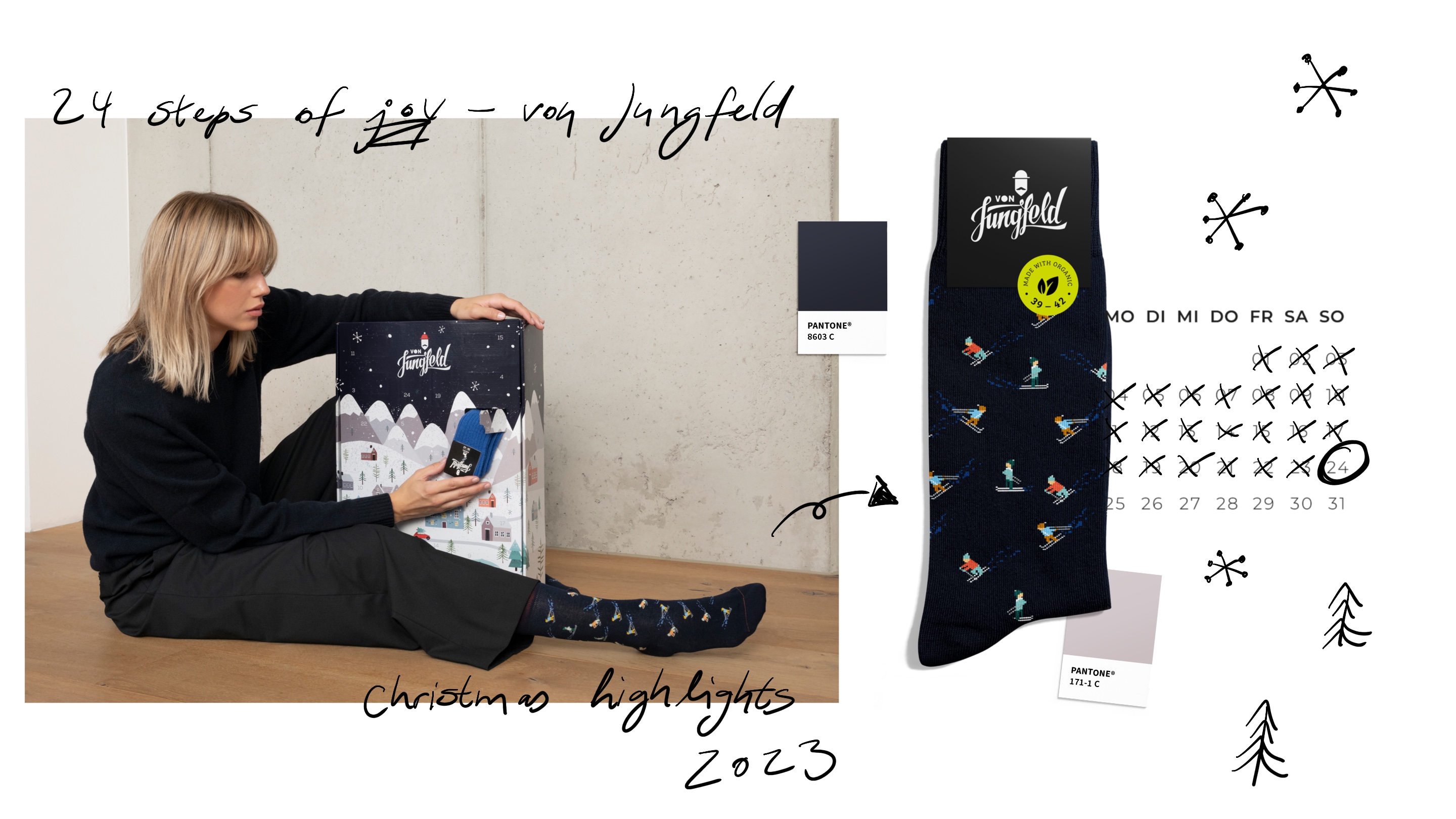 The following pieces, were either created during my studies in Communication Design or while I was at my internship at VON JUNGFELD. Where I was tasked with the marketing materials for the advent calendar, which were displayed on their website, newsletter and in print.