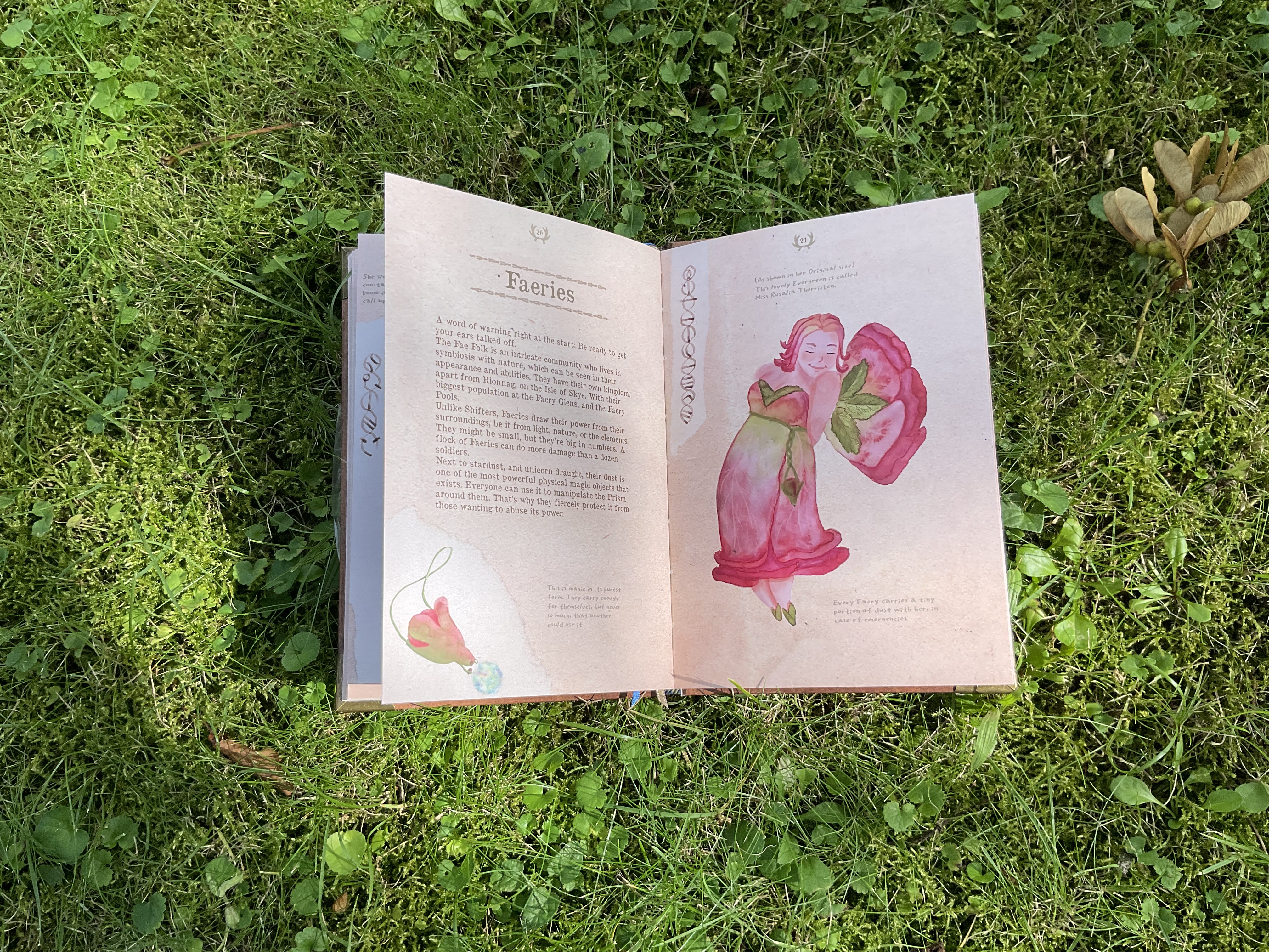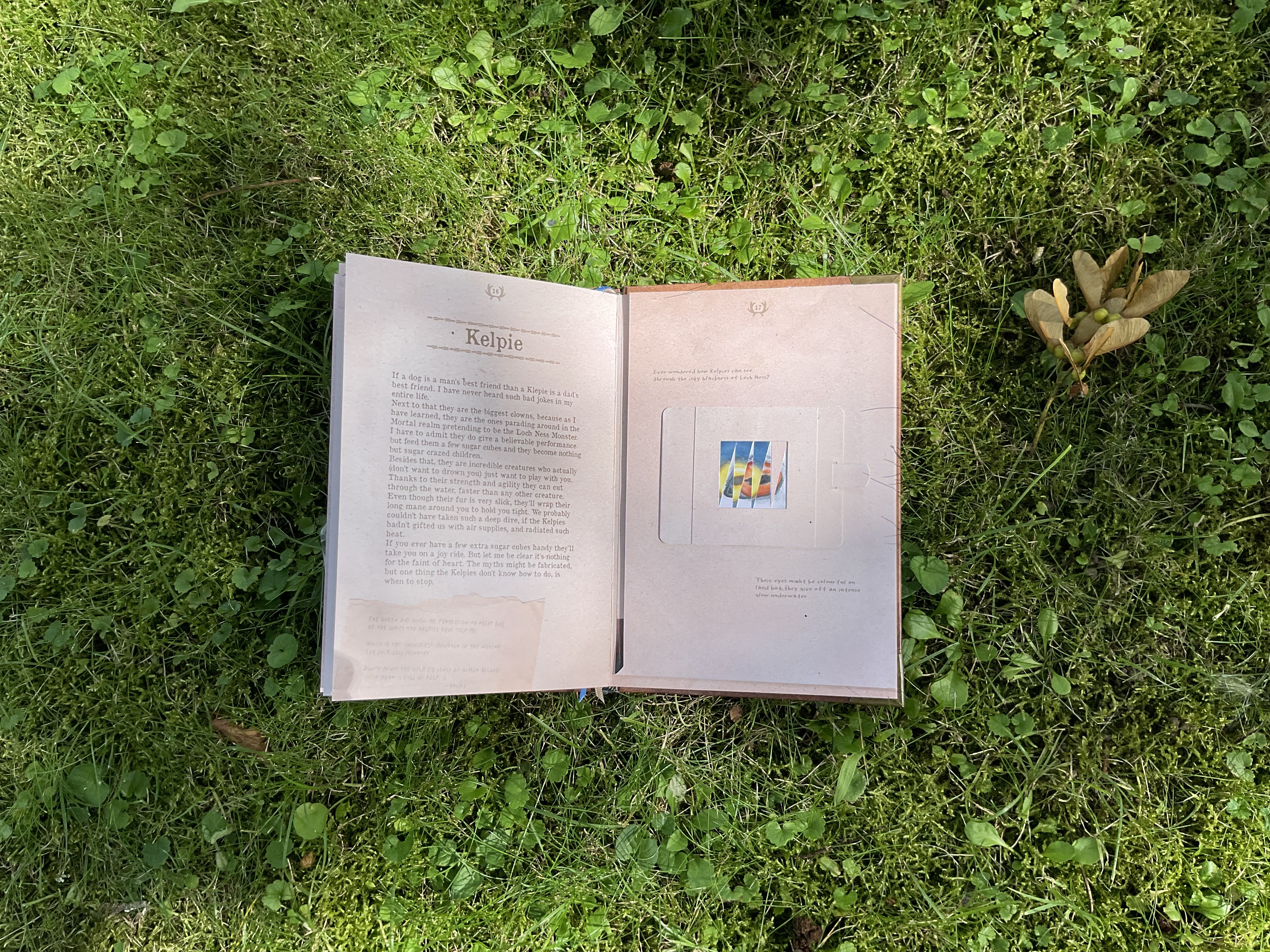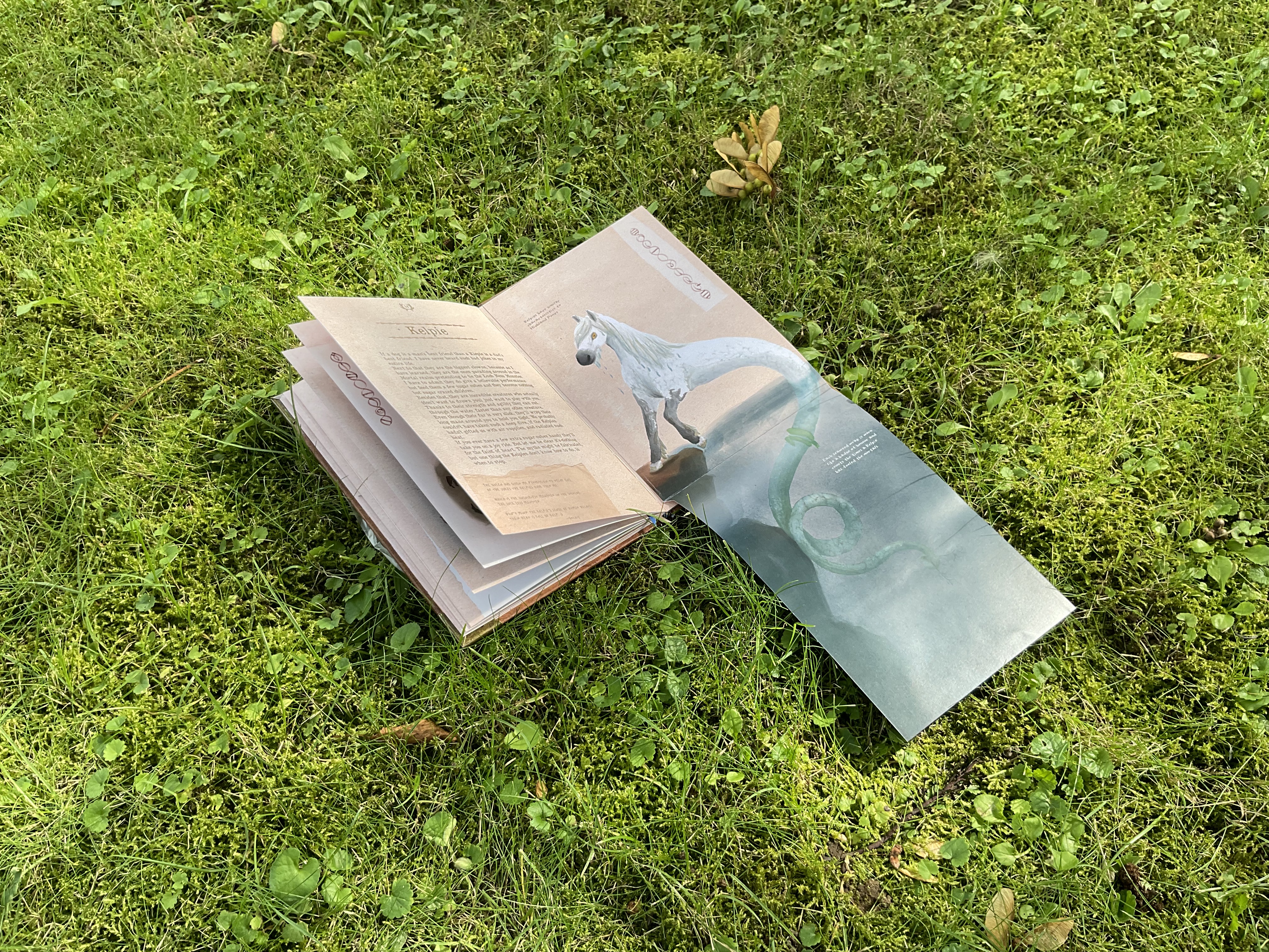 This is my final Bachelor project inspired by my own novel “Bonded through Stars“, which is set in a magical Scottish mirror dimension, where all myths and folktales are true. In this Travelguide you will find all the creatures my novel has to offer. I have described and illustrated them according to my story. The pages are interactive and give the reader a more immersive experience.